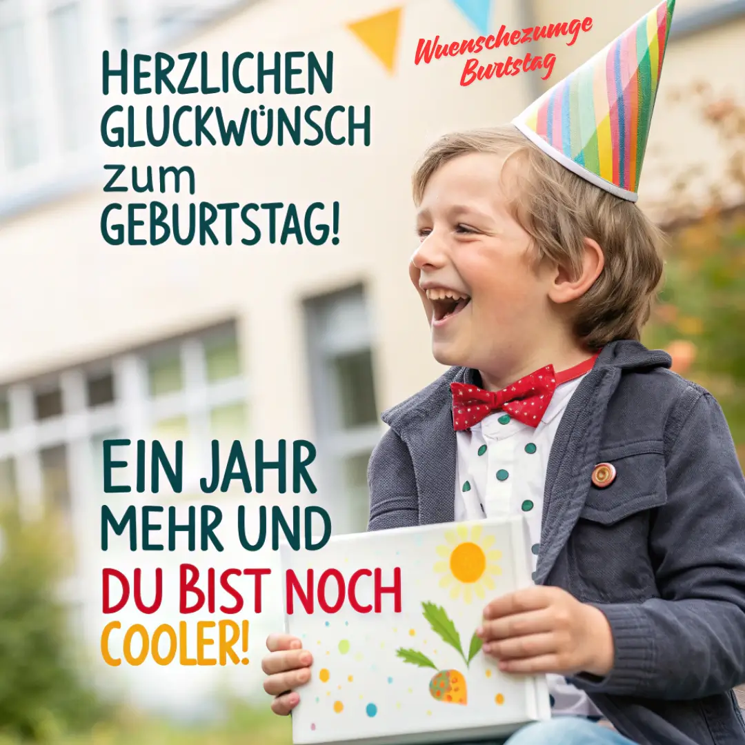 Solche Sprüche ermutigen Kinder, ihre Persönlichkeit zu feiern und mit Freude ins neue Lebensjahr zu starten. Humor und Motivation schaffen eine lebendige und energiegeladene Stimmung. Coole Sprüche eignen sich besonders für Kinder, die gerne selbstbewusst und abenteuerlustig sind.