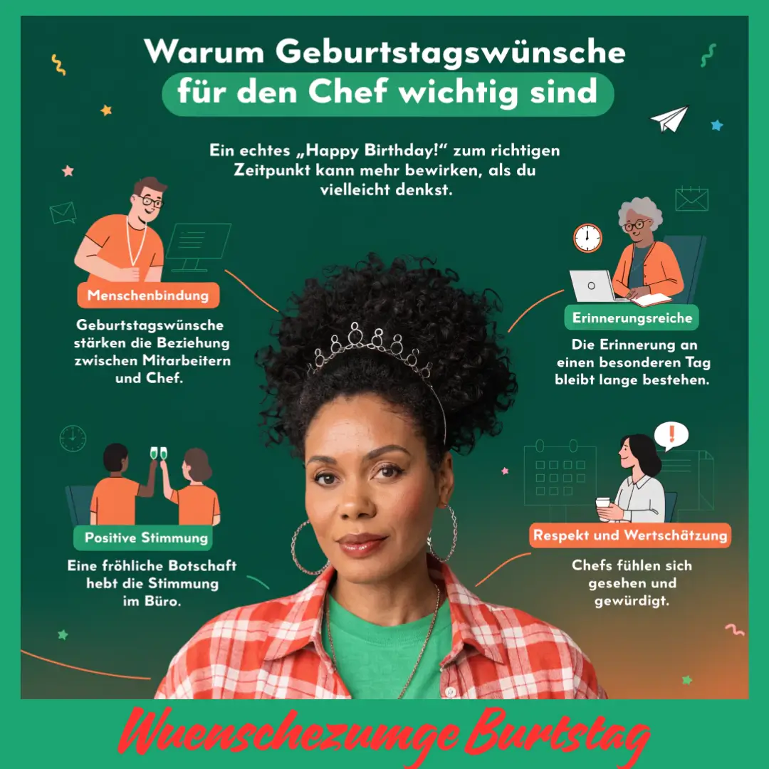 Lustige geburtstagswünsche chefin bringen Humor ins Büro, ohne unhöflich zu wirken. Sie lockern die Atmosphäre auf und sorgen für ein Lächeln. Solche Wünsche sollten respektvoll und passend bleiben. Ein humorvoller Wunsch macht den Tag angenehmer.