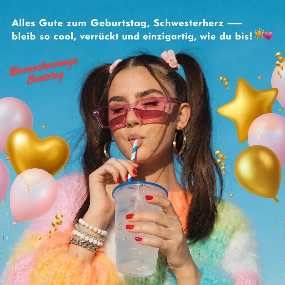 • Geburtstagswünsche für die Schwester: Dein Stil und dein Charme sind unschlagbar 🌟😎