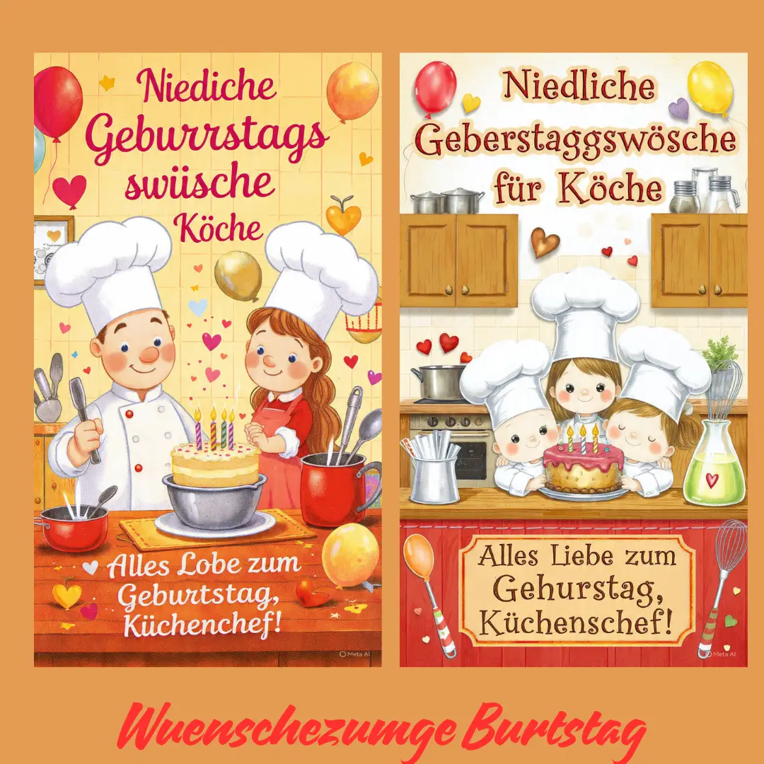 Kurze und einfache Geburtstagswünsche für Köche sind klar, direkt und herzlich. Sie eignen sich perfekt für Karten oder Nachrichten. Trotz ihrer Kürze vermitteln sie Wertschätzung und Freude. Ein einfacher Gruß ist schnell, aber sehr wirkungsvoll.